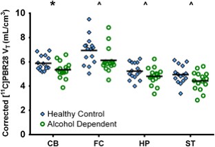 We thank the staff at the Yale PET center for their expertise and support of radiochemistry and imaging. We also thank Jon Mikael Anderson and the staff at the Clinical Neuroscience Research Unit at the Connecticut Mental Health Center for assistance with subject monitoring and evaluation. Dr Lesley Devine provided critical support for cytokine assay. We express our gratitude to Drs Betsy Bradshaw and Jean-Dominique Gallezot for insightful technical discussions. We gratefully acknowledge the funding support of the National Institute on Alcohol Abuse and Alcoholism (R21AA021866; K05AA014715), the National Institute on Drug Abuse (T32DA022975; K02DA031750) and the State of Connecticut Support for the Clinical Neuroscience Research Unit.