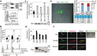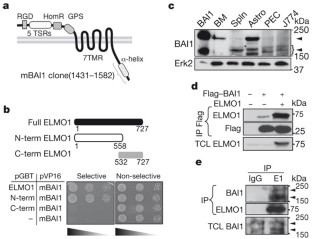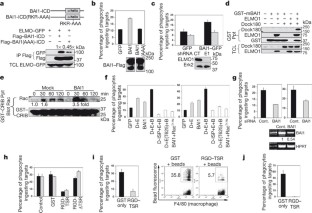 Author Contributions D.P. performed and analysed most of the experiments in this study. A.C.T. performed Amnis Imagestream studies and the confocal microscopy analyses. M.R.E. helped with RT–PCR analyses and the in vivo mouse studies with BAI1-TSR. M.L. generated ELMO1 knockdown 774 cells. L.B.H. analysed the GEF activity associated with BAI1 and provided technical help in other parts of the manuscript. Z.M. performed the lipid membrane strip binding assay of the TSR protein. A.L.K. generated 2-μm lipid vesicles. J.W.S. provided primary astrocytes, technical expertise and critical intellectual input with these studies. K.S.R. provided overall coordination with respect to conception, design and supervision of the study. K.S.R. also wrote the manuscript with comments from co-authors.