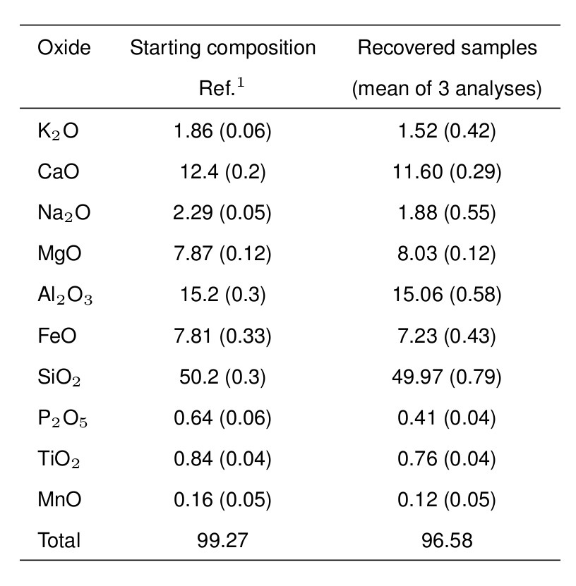 Extended Data Table 1 Chemical composition of the starting sample and recovered samples
