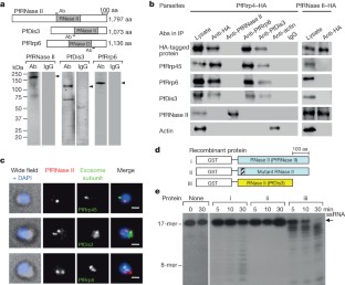 Extended Data Figure 3 Biochemical characterization of PfRNase II protein in P. falciparum.