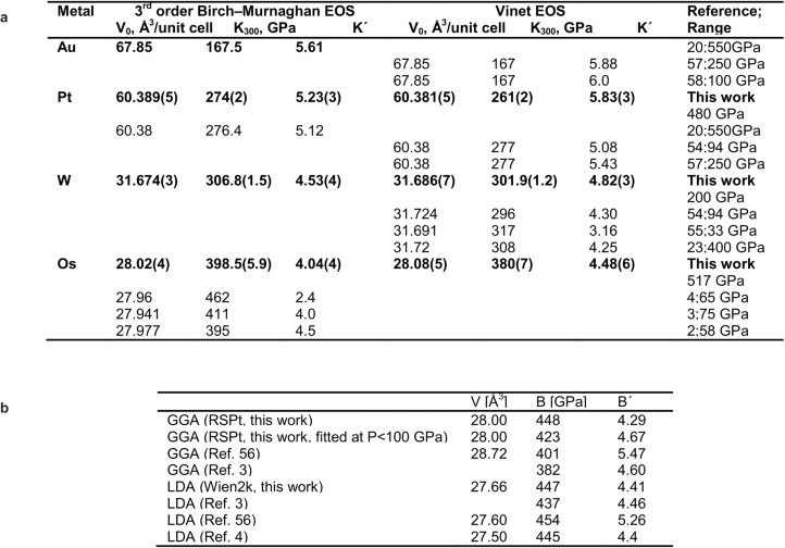 Extended Data Table 1 EOS parameters of Au, Pt, W, and Os