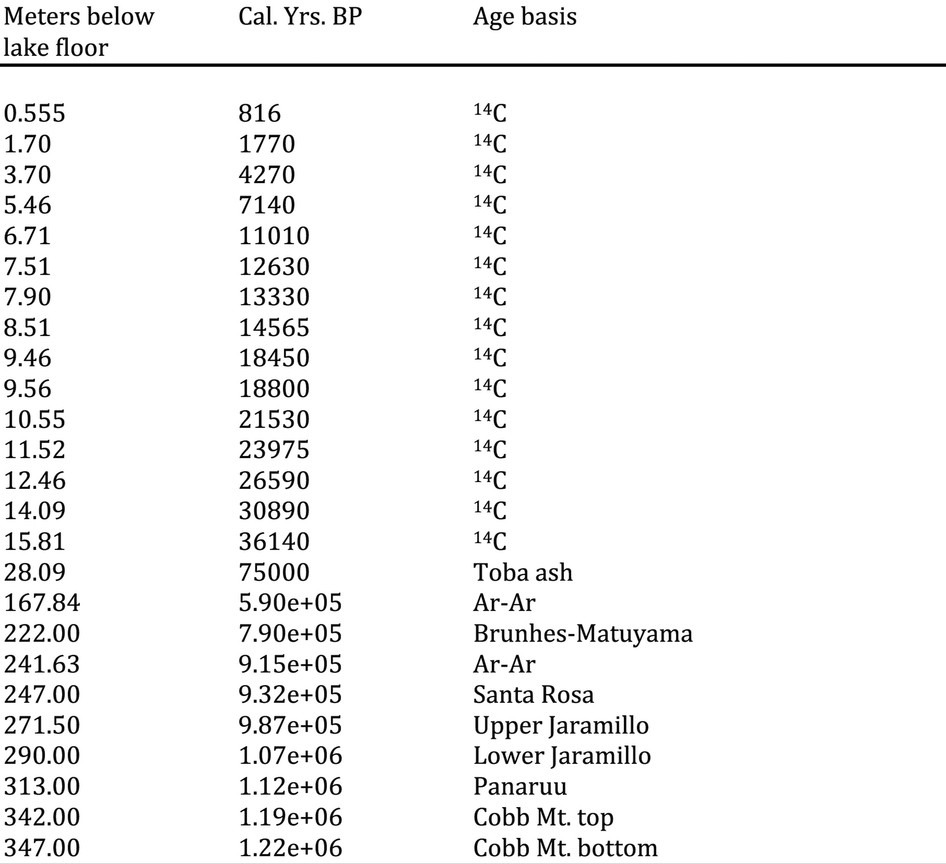 Extended Data Table 2 Sediment dates that underlie the age model of this study