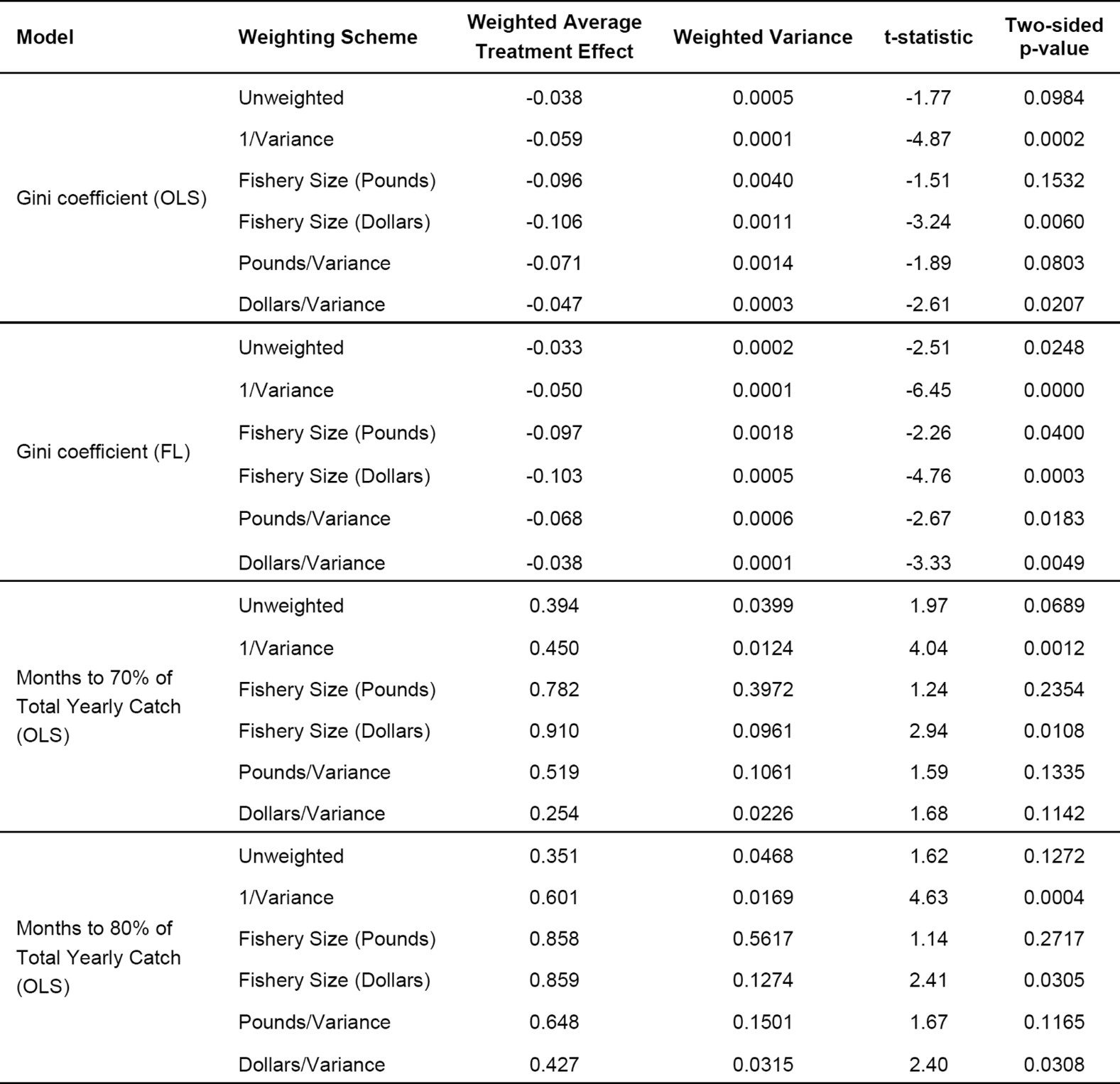 Extended Data Table 8 Meta-analysis showing average season decompression across US catch share fisheries in the Pacific (excluding low quota rockfishes)