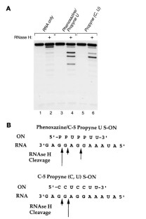 Moulds, C., Lewis, J.G., Froehler, B.C., Grant, D., Huang, T., Milligan, J.F. et al. 1995. Site and mechanism of antisense inhibition by C–5 propyne oligonucleotides. Biochemistry 34: 5044–5053.