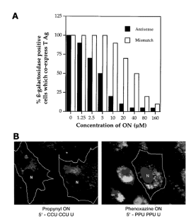 Marcusson, E.G., Bhat, B., Manoharan, M., Bennett, C.F., and Dean, N.M. 1998. Phosphorothioate oligodeoxyribonucleotides disassociate from cationic lipids before entering the nucleus. Nucleic Acids Res. 26: 2016–2023.