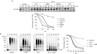 Schaefer, J. B. & Morgan, D. O. Protein-linked ubiquitin chain structurerestricts activity of deubiquitinating enzymes. J. Biol. Chem. 286, 45186–45196 (2011).