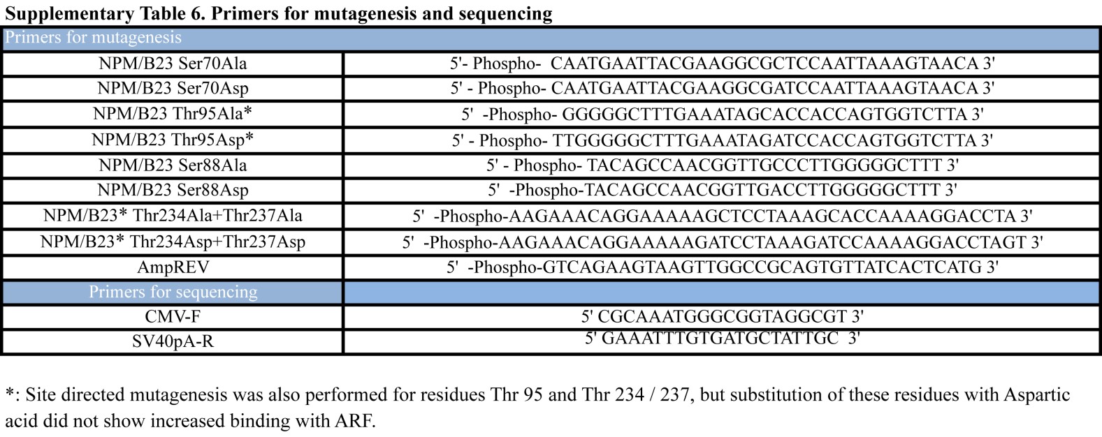 Supplementary Table 4 Table 6: Primers for mutagenesis and sequencing.