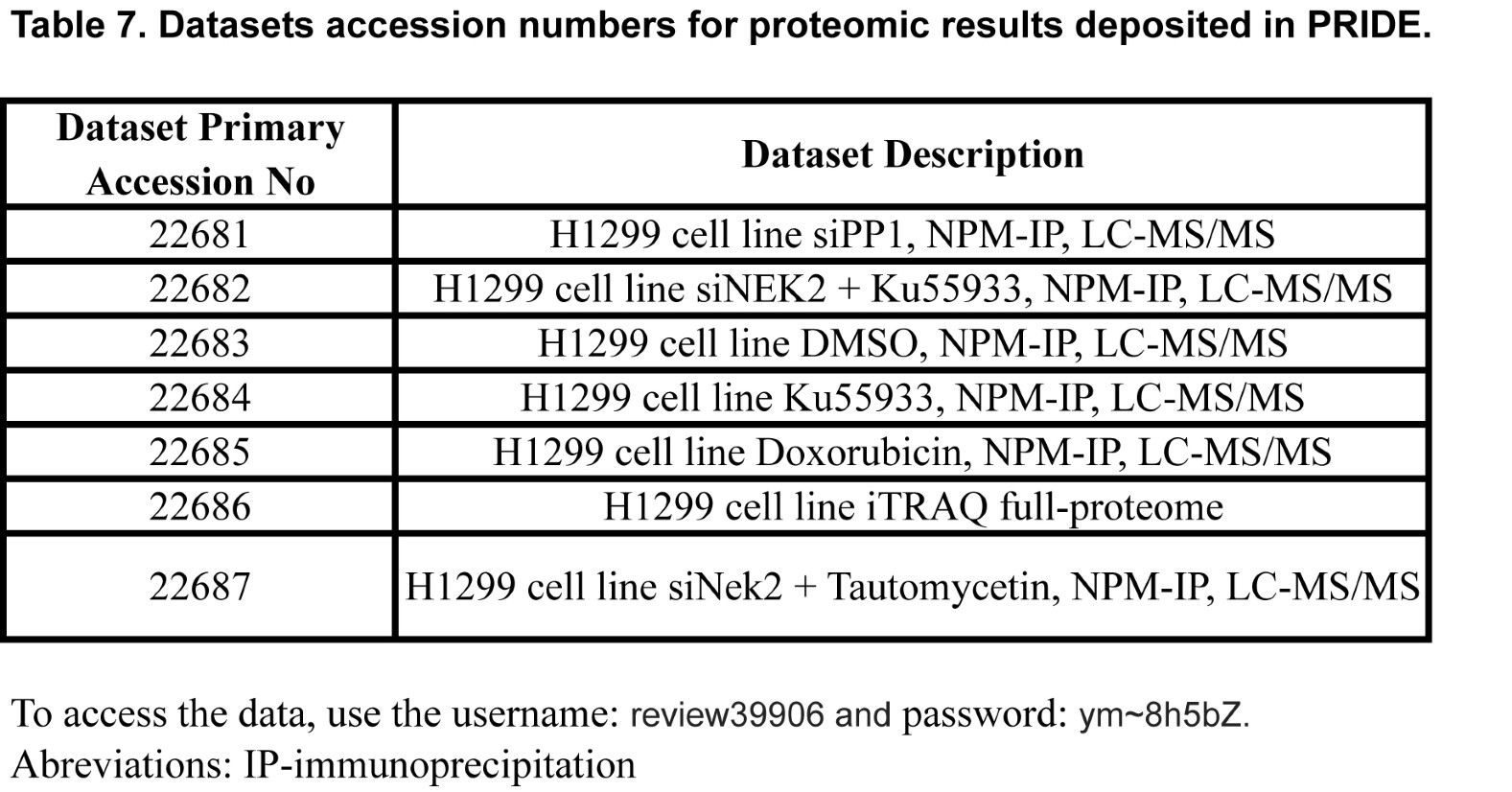 Supplementary Table 5 Table 7: Datasets accession numbers for proteomic results deposited in PRIDE.