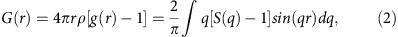 where G(r) is the atomic pair distribution function and ρ the average atomic density.