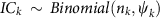 . Assuming that the exon-inclusion read count ICk follows a binomial distribution with the total read count nk=ICk+SCk, we have: