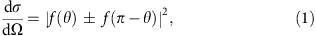 The Pauli exclusion principle1, which forbids two indistinguishable fermions from occupying the same quantum state, is one of the most ubiquitous concepts in physics, underpinning the periodic table, electron transport in condensed-matter systems and the astrophysical phenomena of white dwarf and neutron stars. It arises from the unique quantum phenomenon of indistinguishable particles and a primary difference between the two fundamental types of particles—bosons and fermions—lies in their respective symmetrization requirements. Given a scattering amplitude f(θ) with polar angle θ relative to the collision axis, the properly symmetrized differential cross-section for indistinguishable particles is