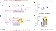 Dopamine (DA) transmission has been implicated in a variety of motor, emotional and cognitive functions1,2,3. Midbrain DA neurons in the substantia nigra pars compacta (SNc) and ventral tegmental area (VTA) provide important modulatory input to the striatal complex, including the caudate putamen (CPu) and nucleus accumbens (NAc). Acetylcholine (ACh) signalling pathways regulate DA efflux within the striatum at two fundamental levels of the circuit4. First, the burst firing of DA neurons in the SNc and VTA is stimulated perisomatically by glutamatergic and cholinergic inputs from the pedunculopontine tegmental (PTg) and laterodorsal tegmental (LDTg) nuclei in the rostral brainstem5,6,7, thereby resulting in increased striatal DA efflux6 and locomotor activity8. In particular, cholinergic inputs from the LDTg appear to act as a gate for the transition from tonic to burst firing modes, thereby regulating the responsiveness of DA neurons to glutamatergic signalling9. Second, ACh release from striatal cholinergic interneurons can trigger DA release via presynaptic nicotinic ACh receptors (nAChRs) on DA axons10,11,12. Inhibition or desensitization of nAChRs on DAergic axons in striatal slices leads to a decrease in DA release evoked by a single stimulus pulse, but an increase in release evoked at burst-like frequencies, thus amplifying the frequency dependence of axonal DA release as monitored by fast-scan cyclic voltammetry13,14.