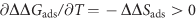 Where ΔGads is the free energy of adsorption and its temperature derivative is the entropy of adsorption (assuming constant heat capacity or enthalpy)