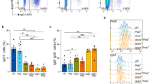 Mouse B cells were prepared, CFSE labelled and cultured as described in Hawkins et al.37 Cell numbers were determined by reference to fluorescence-activated cell sorting calibration beads as described in Hawkins et al.20 B cells were typically >95% B220+, CD19+, IgM+, IgD+ as determined by flow cytometry. Stimuli were added as follows: lipopolysaccharide derived from Salmonella typhosa (LPS, Sigma-Aldrich, St Louis, MO, USA) and anti-CD40 antibody (clone FGK4.5, WEHI) were at used at 20 μg ml−1. IL-4 (R&D Systems, Minneapolis, USA) was added at 20 ng ml−1. In SWHEL-transgenic B cell cultures, HEL (Sigma-Aldrich) and FGK4.5 was bound to 4.5 μM epoxy beads as described previously42. For in vitro differentiation studies, B cells were fixed in 2% PFA for 30 min at 4 °C and permeabilized in 0.01% Tween-20 overnight then, stained for expression of CD138 (clone 281-2, BD Pharmingen), IgM or IgG1.