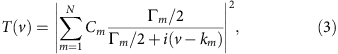 are determined from the complex eigenfrequencies vm, and only the complex amplitudes Cm are fit parameters. The excellent agreement between T(v) and the fit (red and black curve, respectively, in Fig. 3a) demonstrates that the position and width of each resonant peak in T(v) are, indeed, directly determined by the real and imaginary parts of a single individual mode or a well-defined superposition of very few internal modes. Since, in the single-channel regime, each transmission peak is associated with a transmission eigenchannel, we arrive at the conclusion that each transmission eigenchannel is in turn supported by a unique localized mode or a combination of a few spectrally overlapping modes (marked b and c in Fig. 3a, respectively).