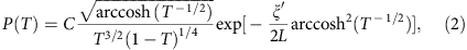 , for a given L, which yields a larger ξ′ as compared with the true localization length ξ. Note that ξ′ is L-dependent and approaches ξ for increasing system length L→∞ (see the inset of Fig. 2a). To explicitly test the above renormalization, we compare both our numerical and experimental results with predictions for the probability density of the transmittance in 1D from ref. 42,