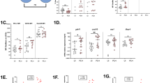 Cells from the thymus, spleens and lymph nodes were isolated and stained with antibodies to mouse lymphocyte surface antigens purchased from Biolegend or eBioscience, or αGalCer/CD1d tetramer (Kirin) for Vα14i NKT cells identification. For PLZF intracellular analyses, cells were surface-stained and then stained with 2 μg ml−1 of anti-PLZF (Santa Cruz) using the Foxp3 Fixation/Permeabilization kit (eBioscience) and analysed by flow cytometry on Fortessa. Lungs and livers were collected from perfused mice, mononuclear cells were prepared by Percoll (GE Healthcare) gradient, stained and analysed for surface markers. For analyses of IL-4 and IFN-γ production, thymocytes were isolated and plated at 1 × 106 cells per ml. Cells were stimulated with 50 ng ml−1 PMA and 1.5 μM ionomycin (Sigma-Aldrich) for 5 h with Brefeldin A (10 μg ml−1) added for the final 3 h. Surface marker staining was performed, followed by intracellular cytokine staining. For intracellular staining, cells were washed in PBS–1% BSA, fixed with 2% paraformaldehyde in PBS for 15 min at 4 °C, washed in PBS, permeabilized in saponin buffer (PBS, 0.5% saponin (Sigma) and stained with 2 μg ml−1 anti-IL-4 or anti-IFN-γ (eBioscience).