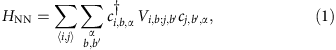 encodes NN hopping, where ‹i,j› denotes NN sites, α=↑,↓ denotes spin and b and b′ the orbitals. The coupling coefficients Vi,b;j,b′ are expressed in terms of the hopping parameters Vssσ, Vppσ, Vppπ and Vspσ, following the notations of ref. 42.