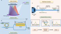 The highly nonlinear rib waveguide was fabricated by thin-film deposition followed by several etching and annealing techniques57. An 850-nm-thick As2S3 layer was deposited on a thermally grown 1.5 μm thick SiO2 (n=1.44)/silicon substrate by thermal evaporation. Thermal and photo annealing of the chalcogenide thin film, led to a bulk-like refractive index of 2.43 (ref. 58). The rib waveguide was fabricated by standard contact photo-lithography and inductively coupled plasma reactive ion etching using CHF3 gas59. The etch depth for the 4 μm wide waveguides used in this work was 425 nm. As a protection layer a polytetrafluoroethylene over-cladding was deposited on the chip60.