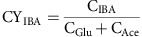 where CIBA, CGlu and CAce is the number of carbons molecules (# of carbons per molecule × concentration (M)) of IBA, fed glucose and fed acetate, respectively.