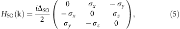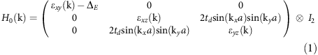 We describe our system using the model introduced in ref. 13, to which we add local (Hubbard) interactions in the mean-field approximation. In k-space, the Hamiltonian is a 6 × 6 matrix in the basis of three orbitals (i=xy, xz, yz) ⊗2 spin states (s=↑,↓). It is a sum of three terms, H(k)=H0(k)+HSO(k)+Hint(k), the first of which being