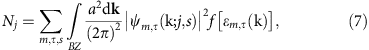 After the self-consistency equations have been solved, the total density of electrons populating band m=1, 2, 3 (related to the frequency of the SdH oscillations) can be calculated as: