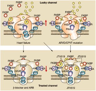 The calcium-release channel, the ryanodine receptor (RyR)2, seems to have a notable role in heart failure and fatal arrhythmia