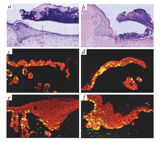Wang, X.J., Greenhalgh, D.A., Lu, X.R., Bickenbach, J.R. & Roop, D.R. TGFα and v-fos cooperation in transgenic mouse epidermis induces aberrant keratinocyte differentiation and stable, autonomous papillomas. Oncogene. 10, 279–289 (1995).