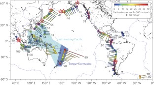 Heuret, A., Conrad, C. P., Funiciello, F., Lallemand, S. & Sandri, L. Relation between subduction megathrust earthquakes, trench sediment thickness and upper plate strain. Geophys. Res. Lett. 39, L05304 (2012).