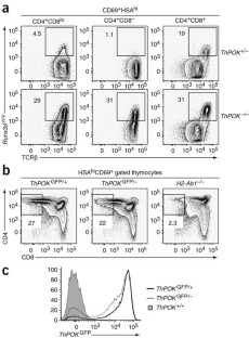 He, X. et al. The zinc finger transcription factor Th-POK regulates CD4 versus CD8 T-cell lineage commitment. Nature 433, 826–833 (2005).
