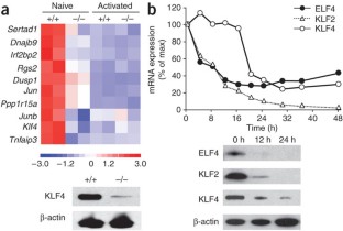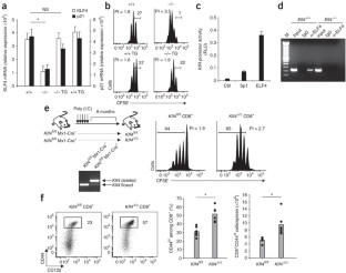 We thank M. Finegold for support; T. Matano for support from the Japanese Foundation for AIDS prevention (to T.Y.); S. Nimer (Memorial Sloan-Kettering Cancer Center) for Elf4−/− and Vav-ELF4 mice; T. Tan (Baylor College of Medicine) for CD4-Cre mice. K. Kaestner (University of Pennsylvania) for mice with loxP-flanked Klf4; M. Puppi and L. Bae for assistance; M. Cubbage, C. Threeton and T. Goltsova for cell sorting; the Gulf Coast Digestive Disease Morphology Core and T.-A. Mistretta for microarray analysis; and C. Rooney for critical review of the manuscript. Supported by the National Cancer Institute of the US National Institutes of Health (KO1 CA099156-01 to H.D.L.), the Dan Duncan Cancer Center at Baylor College of Medicine (H.D.L.), the Curtis Hankamer Basic Research Fund (H.D.L.) and the US National Institute of Allergy and Infectious Diseases (1RO1AI077536-01 to H.D.L.).
