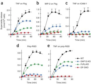 Normal integrin and Gr1 expression on neutrophils lacking DAP12 and FcRγ. (PDF 57 kb)