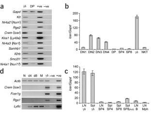 We thank M. Hubank, J. Dunne, G. Clark, W. Turnbull, D. Davies, A. Eddaoudi, C. Simpson, G. Barnes, C. Trigueros, J. Lewis, A. Denzel, S. Clarke, D. Oppenheim, V. Giuggio and S. Creighton for help; G. Schutz for ICER-lacZ mice; G. LeClercq for anti-Ly49E; and R. Ahmed for RNA from LCMV-specific T cells. We acknowledge a Wellcome Trust Programme Grant (A.C.H.) and the Fundação para a Ciência e Tecnologia (Portugal) through the Gulbenkian PhD Programme (B.S.-S.).