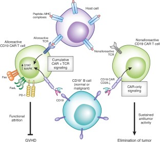 A study in mouse models of allogeneic stem cell transplantation with donor-derived CD19 chimeric antigen receptor (CAR) T cells for the treatment of relapsed B cell malignancies indicates that T cell exhaustion might have a role in preventing allogeneic reactivity of CD19 CAR T cells.
