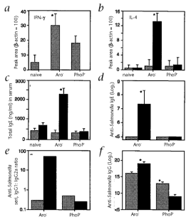 Hess, J., Ladel, C., Miko, D. & Kaufmann, S.H.E. Salmonella typhimurium aroA– infection in gene-targeted immunodeficient mice: major role of CD4+ TCR-αβ cells and IFN-γ in bacterial clearance independent of intracellular location. J. Immunol. 156, 3321–3326 (1996).
