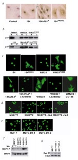 NOTE: In the version of the article initially published online, the following errors appeared. These errors have been corrected in the HTML and PDF versions, and will be corrected in the forthcoming print issue. Abstract: The third sentence should be deleted. Page 1, 2nd column: In the first sentence of the first paragraph, the words "effect on" should be "effector". Page 2, Fig. 2b: In the center panel, bottom blot, lanes 2 and 3 are transposed. Page 3, 1st column: At the end of the first, partial paragraph, "(Fig. 2d and e)" should be "(Fig. 2d)". Page 4, Fig. 4a: In the left panel, "Akt" should be moved up to align with the unlabelled positivity indicators. Page 6, left column: In the first, partial paragraph, the second, full sentence should be deleted. Page 7, left column: In the first sentence of the second paragraph, the first P-value stated, "P = 0.0018" should be "P = 0.003". References: Ref. 13 is incorrect. The correct reference is "Florenes, V.A. et al. Interleukin-6 dependent induction of the cyclin dependent kinase inhibitor p21WAF1/C1P1 is lost during progression of human malignant melanoma. Oncogene 18, 1023-1032 (1999)."