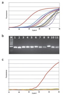 ProbeLibrary, a fast, specific and flexible format for quantitative real-time PCR, is described. The ProbeLibrary concept is based on the fact that just 90 short probes provide transcriptome-wide coverage in most organisms. These short probes are highly specific and possess the high melting temperature (Tm) required for real-time PCR owing to the incorporation of locked nucleic acid (LNA). The probes are dual-labeled fluorogenic probes that are used in standard real-time PCR protocols, with standard instrumentation. ProbeLibrary probes are used in assays designed using free, web-based assay design software, termed ProbeFinder. In seconds, ProbeFinder designs highly specific intron-spanning assays for a target transcript. The system allows multiple design options, including designs for transcript variants and gene family members. Assay design success rate is 96%. This combination of extremely fast assay design and instant availability of the probes leads to faster implementation of real-time PCR assays.