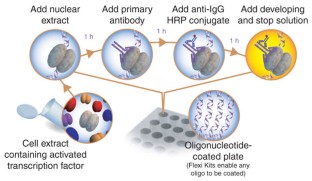 TransAM™ Kits are highly sensitive enzyme-linked immunosorbent assay (ELISA)-based assays that facilitate the study of transcription-factor activation in mammalian tissue and cell extracts. They combine a fast, user-friendly format with a sensitive, specific assay. TransAM assays are up to 100 times more sensitive than gel-shift techniques and can be completed in less than five hours. The TransAM method eliminates the use of radioactivity and provides quantitative results. Moreover, the high-throughput stripwell format allows simultaneous screening of 1–96 samples.