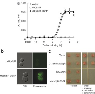 Schmidt, C. et al. Random mutagenesis of the M3 muscarinic acetylcholine receptor expressed in yeast. Identification of point mutations that “silence” a constitutively active mutant M3 receptor and greatly impair receptor/G protein coupling. J. Biol. Chem. 278, 30248–30260 (2003).