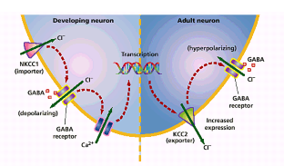 GABA is inhibitory in adults, but it is excitatory in young animals. A recent study shows that activation of the GABAA receptor itself may promote this developmental switch.