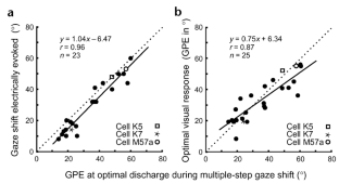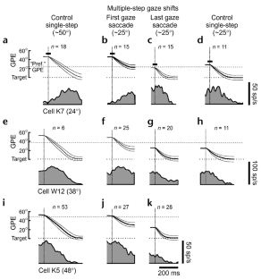 Bergeron, A. & Guitton, D. In multiple-step gaze shifts: omnipause (OPNs) and collicular fixation neurons encode gaze position error; OPNs gate saccades. J. Neurophysiol. 88, 1726–1742 (2002).