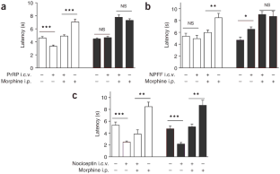 Ueda, H. et al. Partial loss of tolerance liability to morphine analgesia in mice lacking the nociceptin receptor gene. Neurosci. Lett. 237, 136–138 (1997).