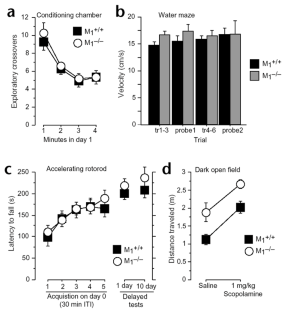 Miyakawa, T., Yamada, M., Duttaroy, A. & Wess, J. Hyperactivity and intact hippocampus-dependent learning in mice lacking the M1 muscarinic acetylcholine receptor. J. Neurosci. 21, 5239–5250 (2001).
