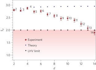 Durt, T., Kaszlikowski, D. & Żukowski, M. Violations of local realism with quantum systems described by N-dimensional Hilbert spaces up to N=16. Phys. Rev. A 64, 024101 (2001).
