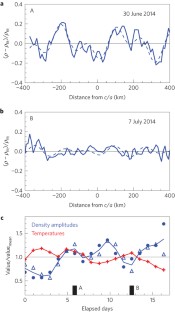 I.C.F.M.-W. carried out the density wave extraction and analysis shown in Figs 2–4, and jointly with S.B. led the scientific interpretation of the results. S.B. and J.-C.M. performed the analysis of raw accelerometer readings using the GINS software to obtain density values. S.B. carried out the error analysis which led to Fig. 1. H.S. led the implementation of the VExADE experiment in the mission planning and made important scientific contributions in the interpretation of the data. I.C.F.M.-W. wrote the paper with significant contributions from all the authors in interpreting the results and editing of the manuscript.