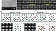 To obtain the conducting bottom electrode with hexagonal in-plane symmetry prior the YMO growth, we deposited a Pt thin layer (~20 nm thickness) on each (ALO(0001)) substrate using pulsed laser deposition using a KrF excimer laser (248 nm wavelength) at an Ar ambient of 5×10−3 Pa and a substrate temperature of 450 °C. Next, the YMO films were grown on the Pt-coated ALO(0001) substrates. The films were deposited at a substrate temperature of 800 °C in an oxygen pressure of 0.7 Pa. At the end of the growth, the samples were kept in the oxygen ambient of 300 Pa while the substrates were maintained at 600 °C. The crystal structure and epitaxy of the Pt/ALO(0001) and YMO/Pt/ALO(0001) heterostructures were characterised by XRD using the Cu Kα radiation (PANalytical, Almelo, The Netherlands, PANalytical X9 Pert PRO). The cross-sectional TEM images were obtained from a HRTEM (JEOL, Akishima, Japan, JEOL 2011). The film surface topology was examined by atomic force microscopy. The ferroelectric domain structures were probed by piezoresponse force microscopy (Asylum Research, Santa Barbara, CA, USA, Cypher) using a dual-frequency resonant-tracking technique. The vortex domains of YMO film were observed by plane-view dark-field TEM technique.