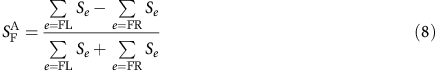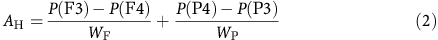 where FL={F1,F3,F5,FC1,FC3,FC5} and FR={F2,F4,F6,FC2,FC4,FC6}. A similar formula was used for the parietal asymmetry with PL={CP1,CP3,CP5,P1,P3,P5} and PR={CP2,CP4,CP6,P2,P4,P6}. A hemispheric synchronization asymmetry was defined to combine frontal and parietal asymmetry as was done for power asymmetry.