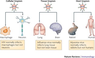 Viral tropism is the ability of a given virus to productively infect a particular cell (cellular tropism), tissue (tissue tropism) or host species (host tropism). Various host innate immune antiviral cytokines, in particular the interferons (IFNs) and tumour necrosis factor (TNF), have a role in mediating viral tropism at these different levels.