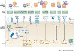 Innate immune recognition by pattern recognition receptors (PRRs) is the first step for activation of host defence mechanisms during Candida infections. C-type lectin receptors (CLRs) are the main family of PRRs involved in recognition of Candida species, but Toll-like receptors, NOD-like receptors and RIG-I-like receptors are also involved in the antifungal response.