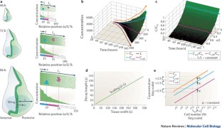 Wartlick, O. et al. Dynamics of Dpp signaling and proliferation control. Science 331, 1154–1159 (2011). Analyses quantitatively both the growth of imaginal discs and the properties of the DPP gradient, showing that the gradient scales owing to the regulation of the degradation rate of DPP and that cells divide when they increase their signalling levels by 50%.